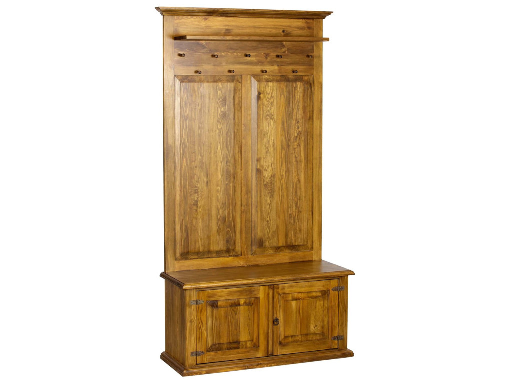 Vešiaková stena z masívu Gerlach je praktickým spojením vešiakového panelu a dvojdvierkovej botníkovej skrinky. Umožňuje tak nielen pohodlné zavesenie kabátov a doplnkov, ale aj prehľadné uloženie obuvi.