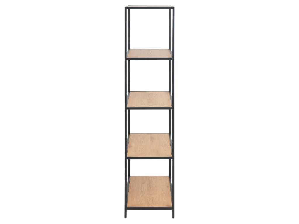 Kovový regál Seaford ponúka praktické otvorené úložné priestory v kombinácii MDF v dekore divokého duba a čiernej ocele. Jeho čistý a funkčný dizajn je ideálny na knihy, dekorácie či doplnky. Robustná konštrukcia zabezpečuje vysokú nosnosť a stabilitu. Skvelý doplnok do pracovne, obývačky aj chodby.