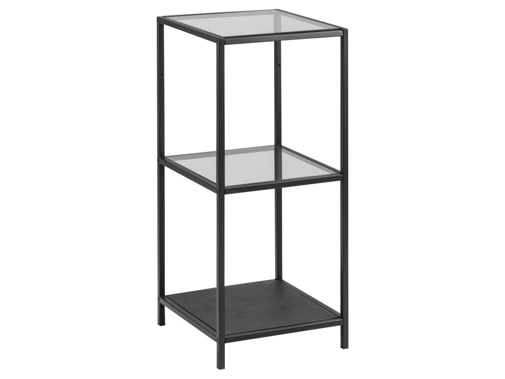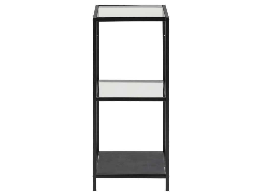 Malý regál Seaford 3 ponúka praktické a štýlové riešenie na vystavenie či uskladnenie kníh a doplnkov. Kombinácia číreho skla a čiernej oceľovej konštrukcie dodáva interiéru moderný industriálny vzhľad. Kompaktné rozmery ho predurčujú do menších priestorov, kde vynikne svojou vzdušnosťou.