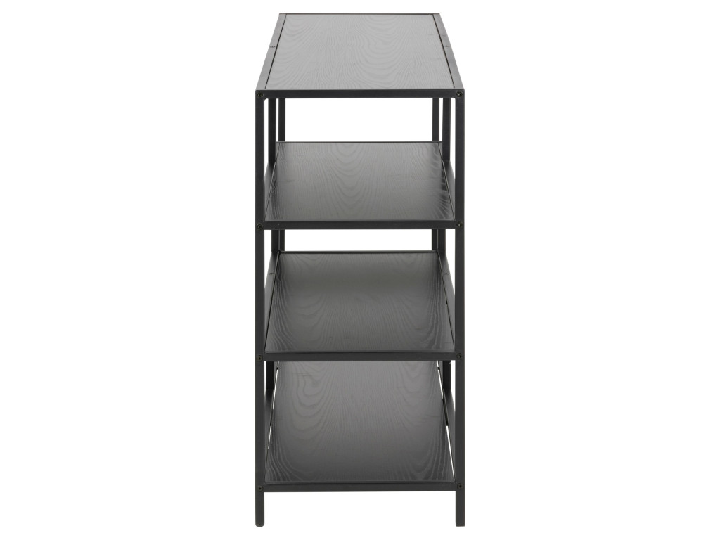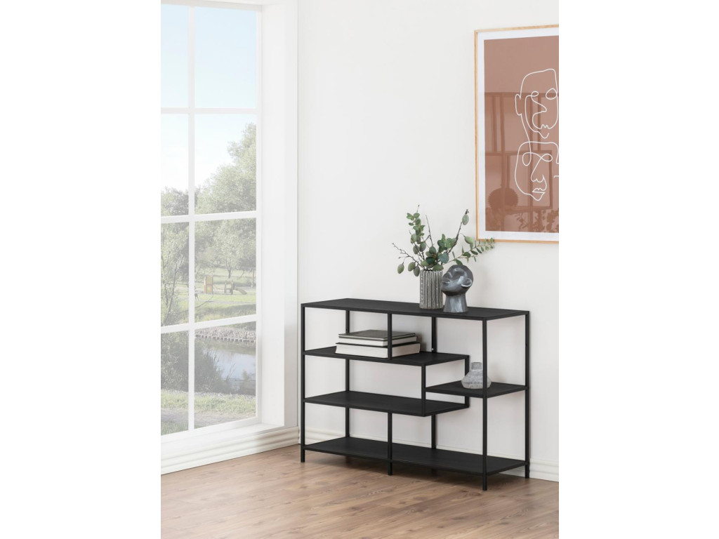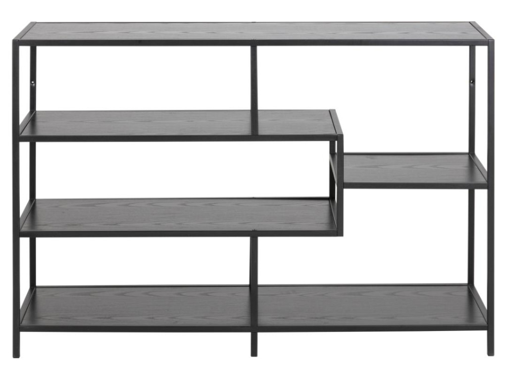 Nízky regál Seaford je kompaktný a multifunkčný kus nábytku. Matná čierna oceľ dodáva industriálny nádych, zatiaľ čo asymetrická štruktúra umožňuje rôzne využitie. Perfektne zapadne do malých miestností alebo ako doplnok k vyšším regálom.