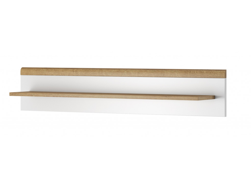 Závesná polica na stenu Primo je síce nenápadným no za to funkčným nábytkom v obývačke či chodbe. Polica poskytne ďalší priestor na vystavenei dekorácií a doplnkov. Je vyrobená z drevotrieskovej dosky vo farbe dub riviera a bielej.