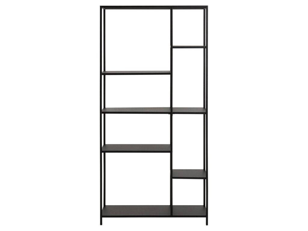 Regál Newcastle ponúka štýlový a funkčný spôsob uskladnenia. Asymetrická čierna oceľová konštrukcia pôsobí výrazne a zároveň elegantne. Ideálny je ako knižnica, dekoratívna stena alebo moderný doplnok do kancelárie.