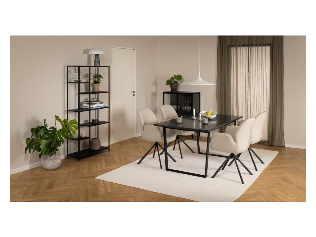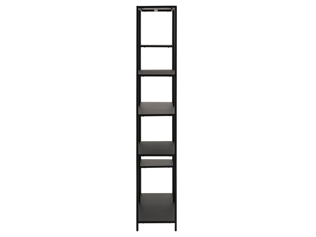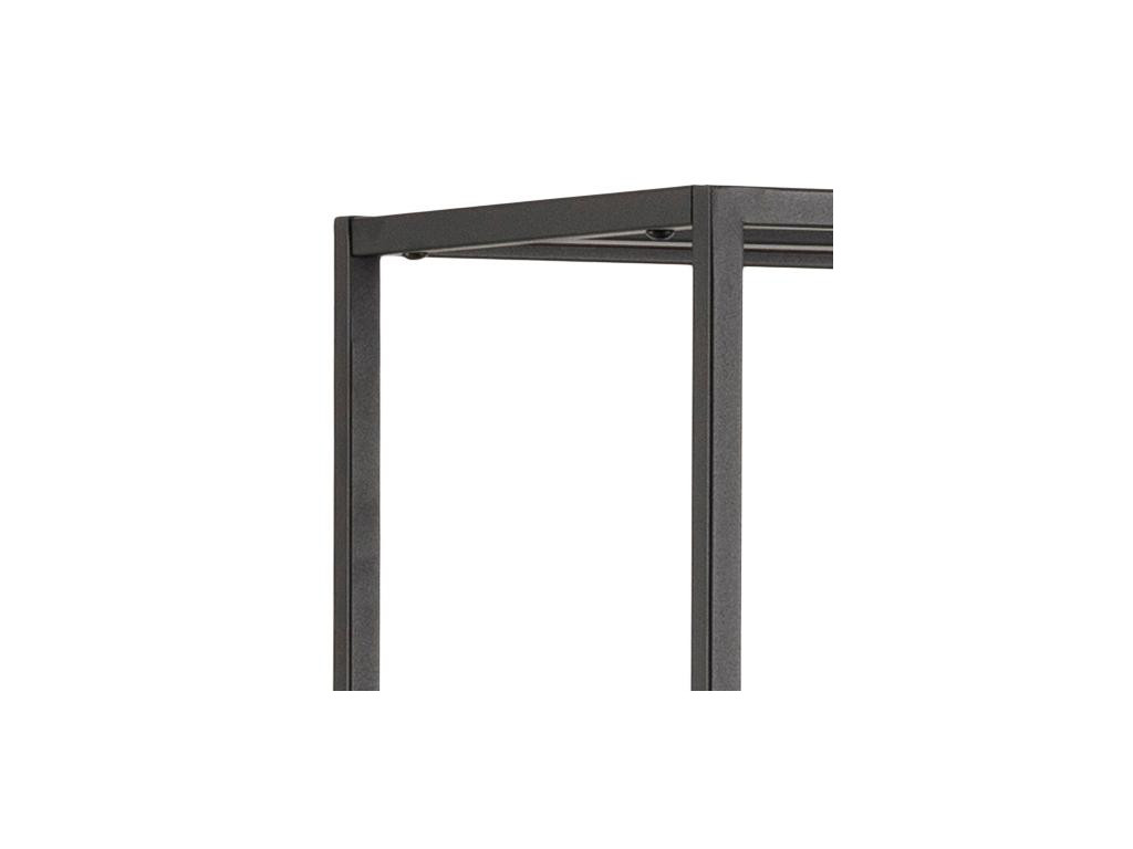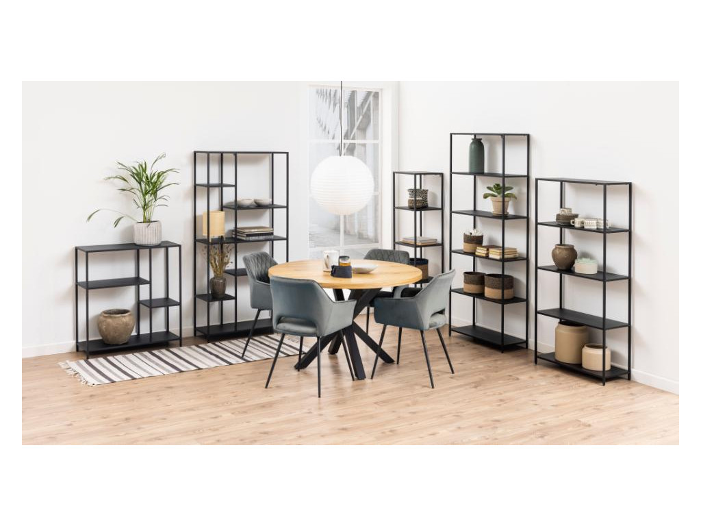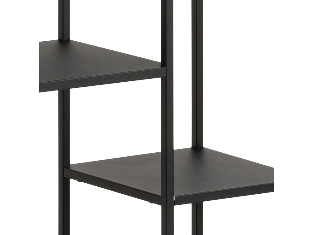 Tento regál, ktorý môže sĺúžiť aj ako knižnica, z kolekcie Newcastle kombinuje minimalistický štýl s asymetrickým usporiadaním políc, ktoré pôsobí moderne a nečakane sviežo. Vďaka konštrukcii z ocele s matnou čiernou povrchovou úpravou a hrubým práškovým nástrekom získava celok robustný industriálny vzhľad, no zároveň si zachováva vizuálnu ľahkosť. Vhodná na knihy, dekorácie, rastliny či úložné boxy, čím sa stáva praktickým a estetickým doplnkom pre moderné interiéry. Skvele zapadne do obývačky, pracovne alebo aj do loftových priestorov.
