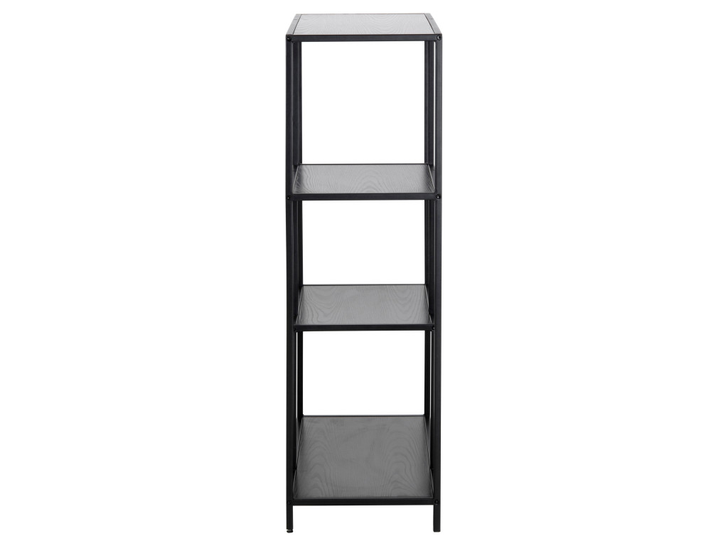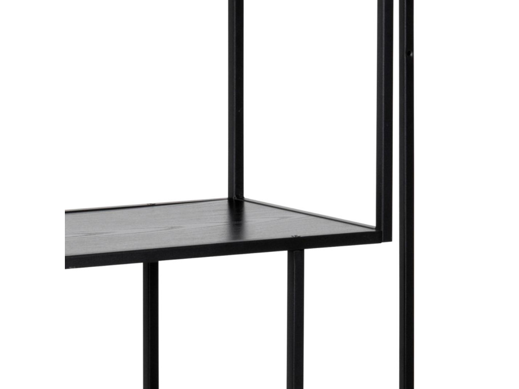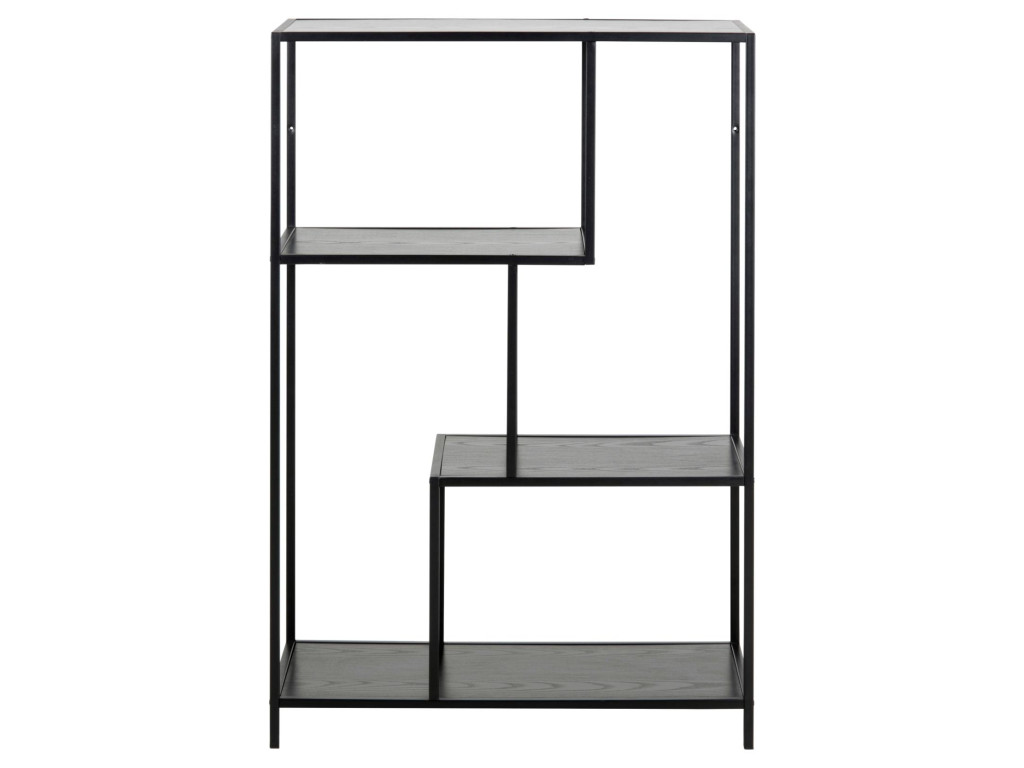 Regál Seaford v čiernom prevedení prináša praktické a štýlové úložisko. Asymetrický dizajn umožňuje kombinovať funkčnosť s estetikou. Vhodný na knihy, dekorácie alebo rastliny. Je ideálny do moderných interiérov v industriálnom štýle.