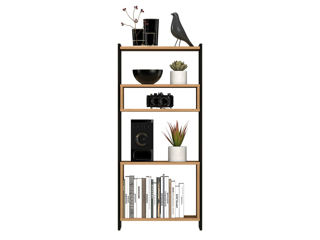 Regál Tris 05 je úzky a nižší model s 5 policami, vyrobený v kombinácii dub artisan a čiernych rámov. Prečnievajúce police vytvárajú moderný dizajn vhodný pre menšie priestory. Praktický a štýlový doplnok do interiéru.