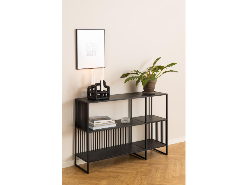 Strington regál so šírkou 120 cm je ideálnym riešením na vystavenie dekorácií aj kníh. Čierna kovová konštrukcia mu dodáva industriálny šmrnc. Jednoduchý a zároveň efektný doplnok do obývacej izby či kancelárie.