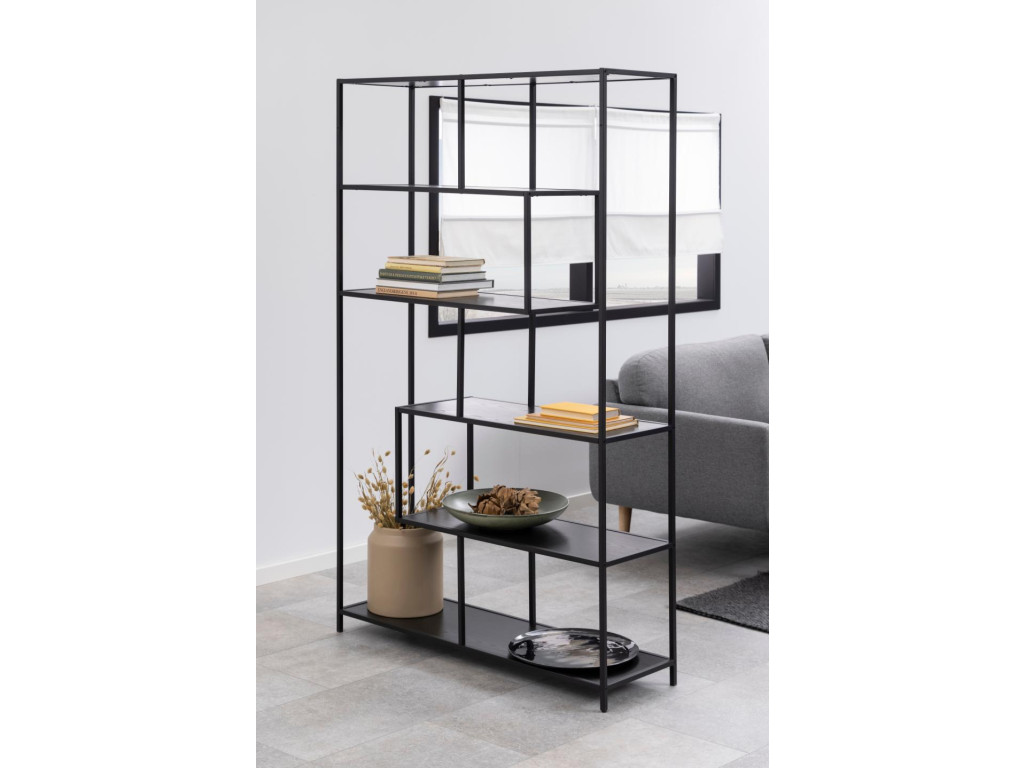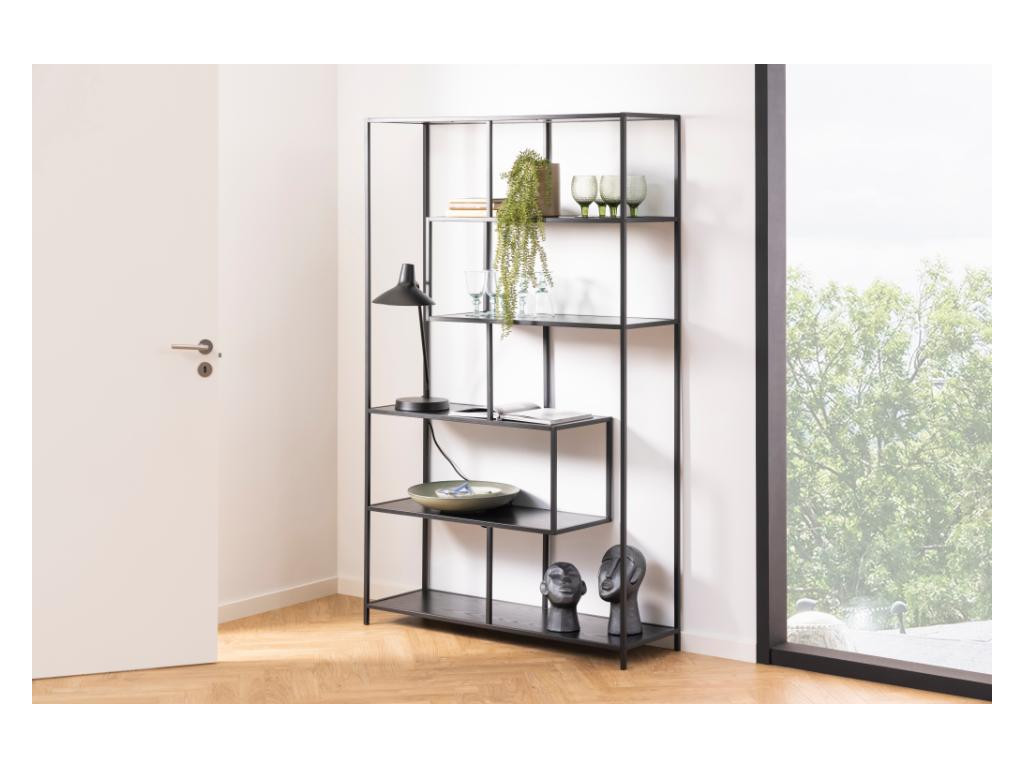 Regál Seaford zaujme asymetrickým dizajnom a robustnou konštrukciou. Vyrobený z čiernej ocele a MDF, ponúka dostatok úložného priestoru na knihy, dekorácie či dokumenty. Vysoká stavba a moderný vzhľad z neho robia ideálny doplnok do štýlového interiéru.
