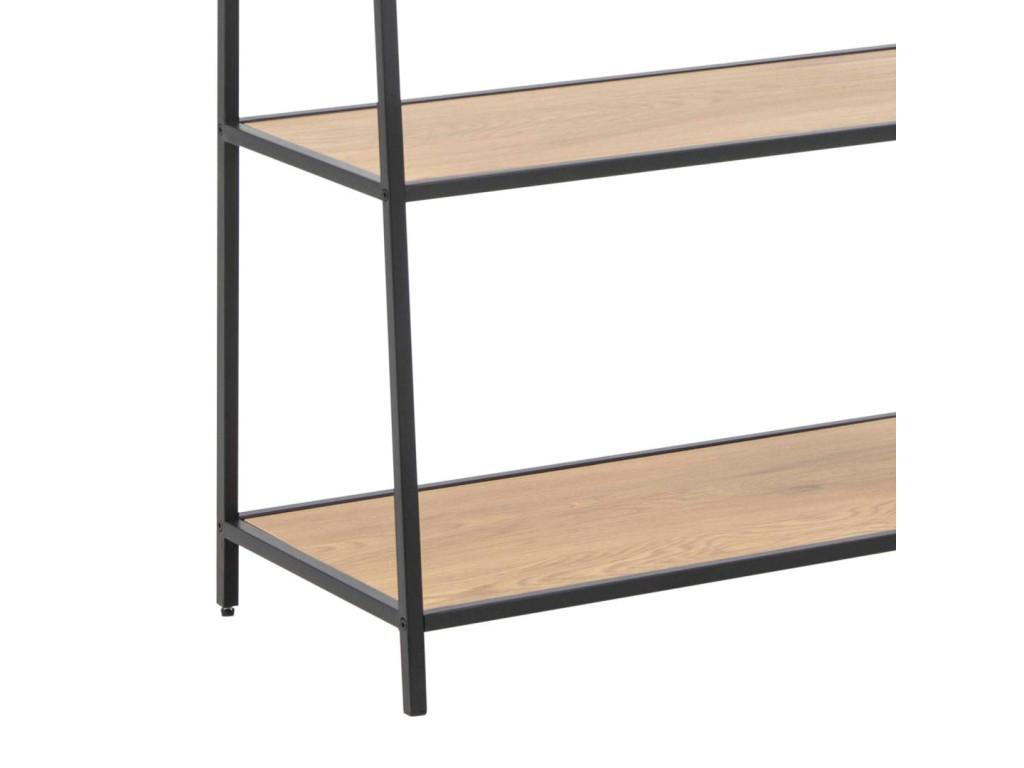 Vysoký regál Seaford ponúka kombináciu funkčnosti a dizajnu s otvoreným úložným priestorom. Matná čierna oceľová konštrukcia kontrastuje s dekorom divokého duba. Skvelý doplnok do obývačky, kancelárie alebo študentskej izby. Minimalistický štýl s industriálnym nádychom.