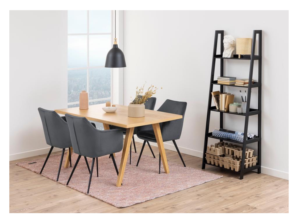 Čierny regálový regál Wally ponúka elegantné riešenie, ako prepojiť funkčnosť s moderným dizajnom. Vďaka stupňovitým policiam vytvára vzdušný dojem a poskytuje dostatok priestoru na knihy, dekorácie či izbové rastliny. Minimalistický rám z MDF v čiernej lakovanej úprave dokonale zapadne do škandinávsky ladených interiérov a dodá miestnosti sofistikovaný akcent.