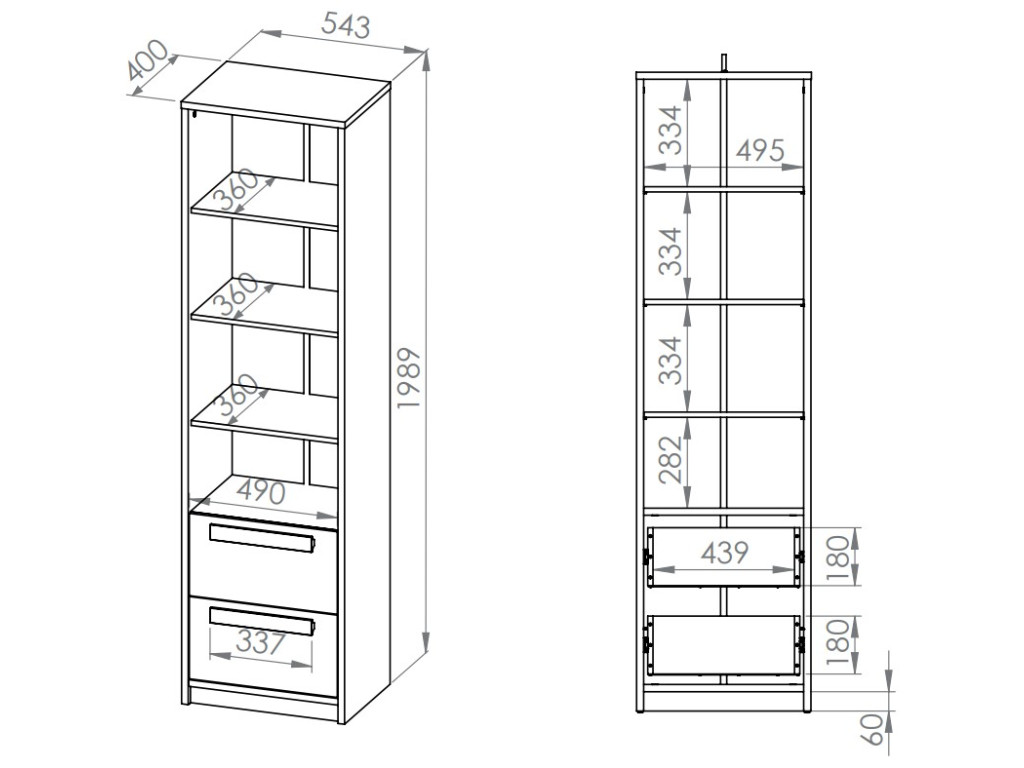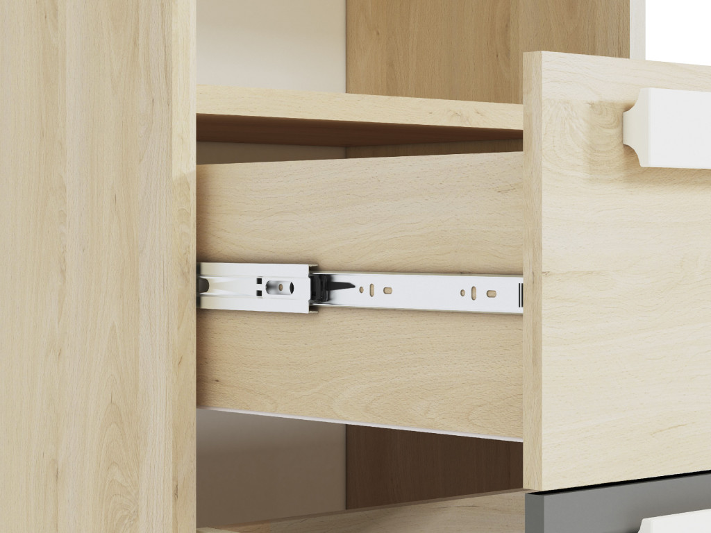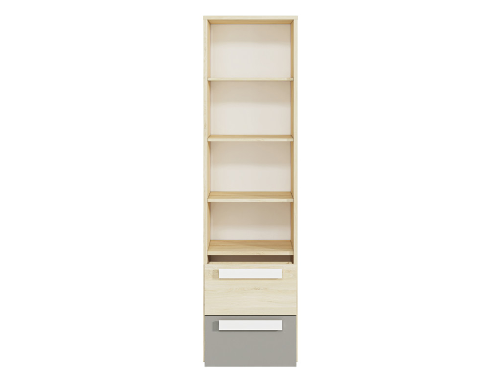 Otvorený regál Drop 0501 v kombinácii buk fjord a sivá ponúka tri police a teda štyri priečinky na prehľadné uloženie hračiek či kníh. Dve spodné zásuvky sú ideálne na drobnosti, ktoré chcete mať vždy po ruke, pričom regál dodáva izbe moderný, štýlový vzhľad.