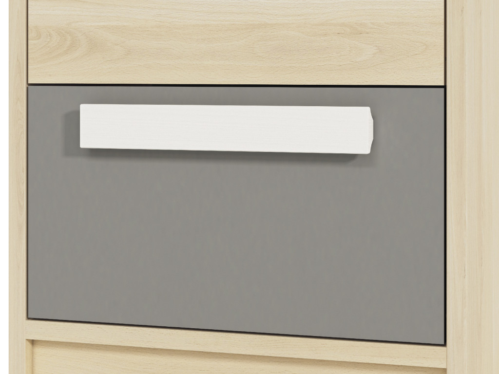 Kolekcia Drop je moderný nábytkový systém navrhnutý podľa najnovších dizajnových trendov, ktorý v sebe spája jednoduchosť a prirodzený štýl. V jemnej kombinácii farieb buk fjord, bielej a sivej platiny, s geometrickými bielymi úchytkami, prináša do interiéru sviežosť a harmóniu, ktorá dokonale zapadá do škandinávskeho štýlu.