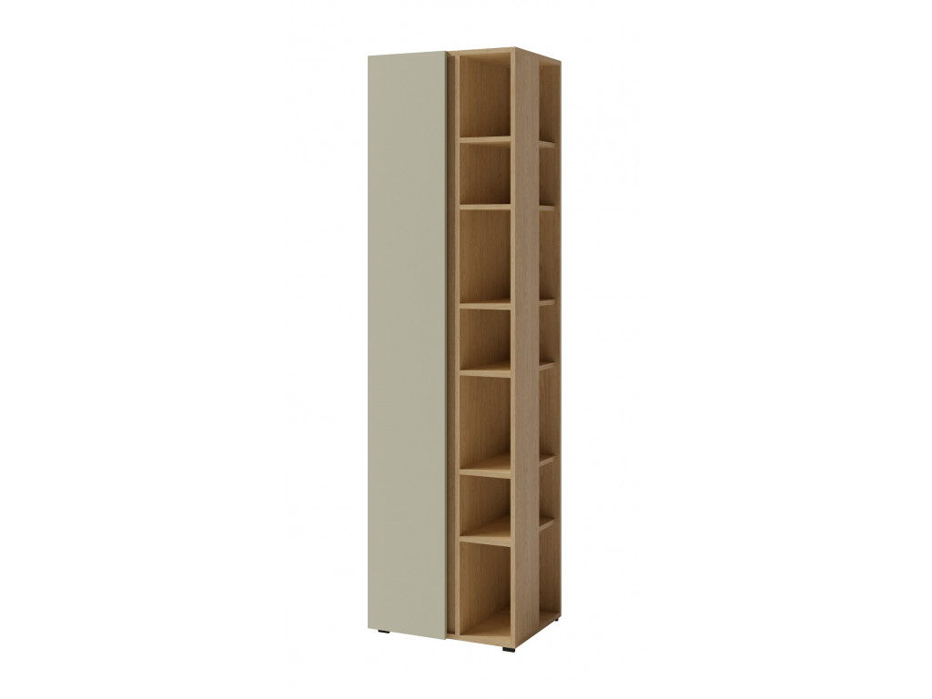 Moderný regál je v kombinácii eukalyptovej - zelenej farby a duba v odtieni baltic. Uložný priestor regálu je rozdelený na dve polovice. Jednu polovicu tvorí skrinka so 4 poličkami a druhú rohový regál so 7 otvorenými poličkami, ku ktorým máte prístup z oboch strán. Regál sa ľahko kombinuje s inými produktami z kolekcie Luca.