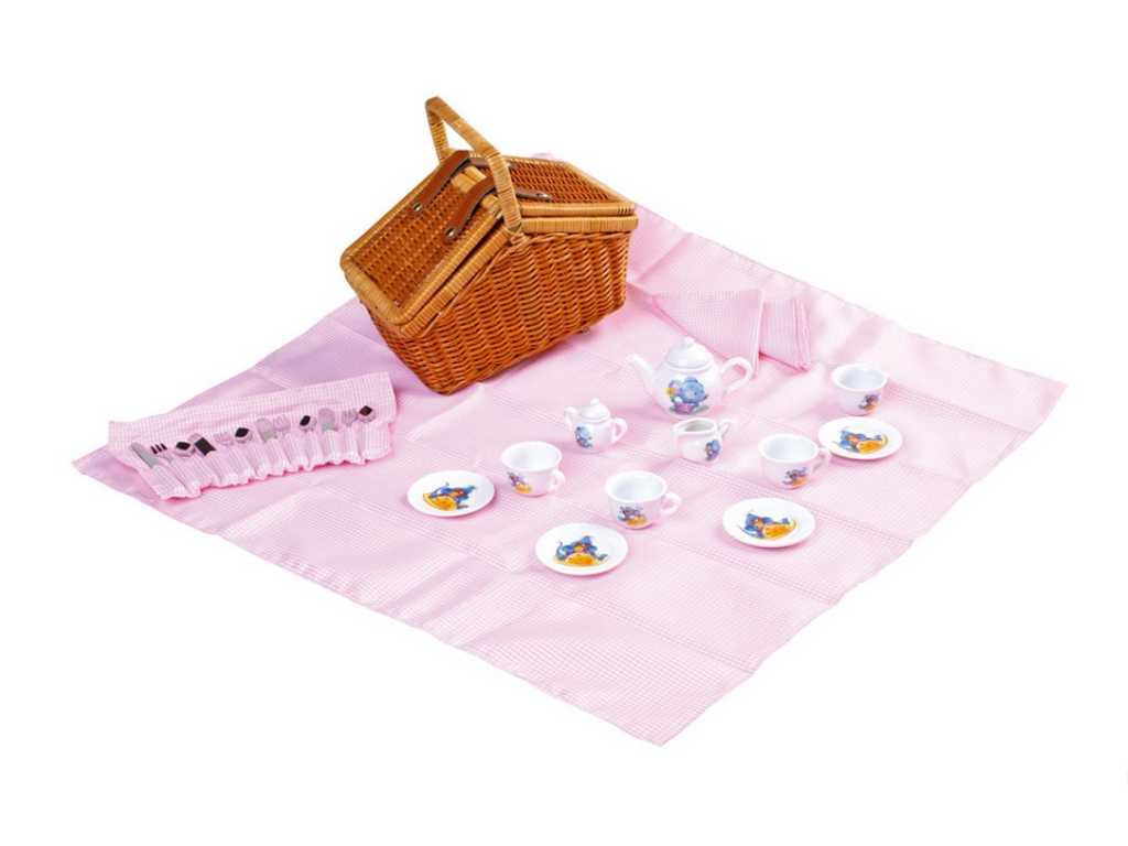 Poďte si vychutnať čaj v prírode! Praktický piknikový prútený košík obsahuje celkom 30 častí. Riad je porcelánový, príbory sú z kovového materiálu. Košík je vystlaný látkovou výstelkou v ružovej farbe.