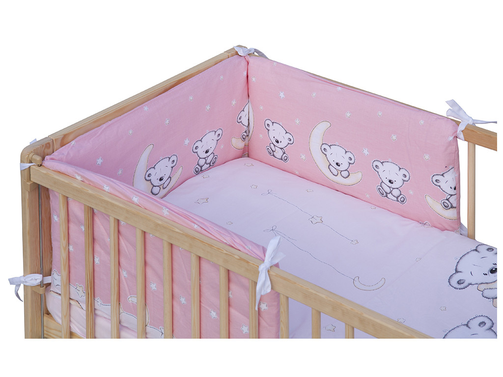 Ružová výbava do postieľky Toro, je výborným pomocníkom pri zariaďovaní detského hniezdočka. Nájdete v nej detské obliečky na perinku a vankúš a taktiež ochranný mantinel s výplňou. Sadu je možné kedykoľvek vyprať. Dieťatko trávi spánkom veľa času. Je preto dôležité vybrať kvalitnú posteľnú bielizeň, ktorá mu poskytne štandardný komfort.
