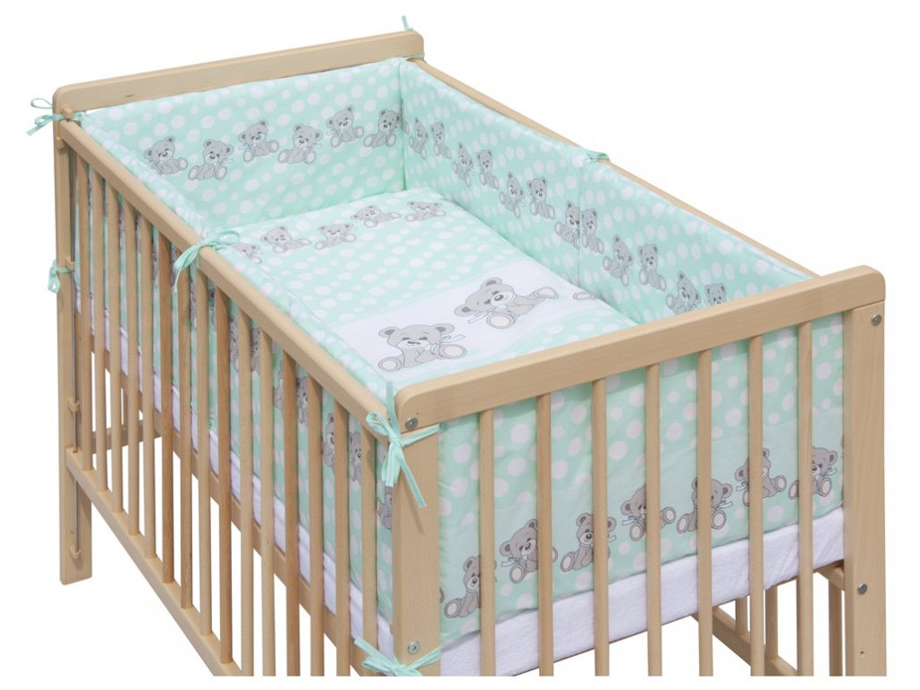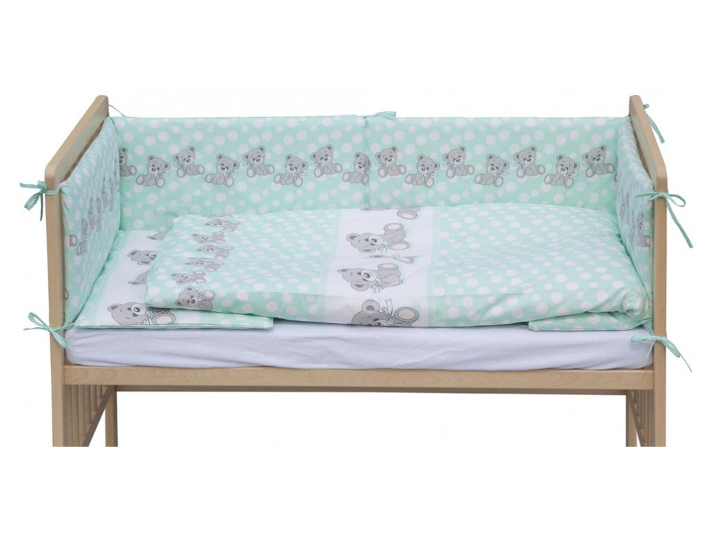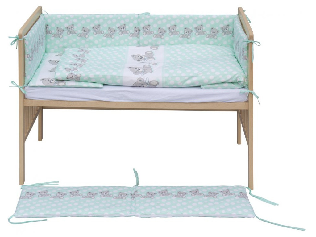 Tyrkysová sada do postieľky 120 x 60 cm, je vybavená doplnkami, ktoré oceníte pri každom dieťati. Farebné obliečky s dizajnom rozjasnia každú postieľku a dieťatko perfektne zahrejú. Súprava obsahuje aj ochranný mantinel na postieľku, ktorý obklopí dieťa a bude ho udržiavať v príjemnom teple.