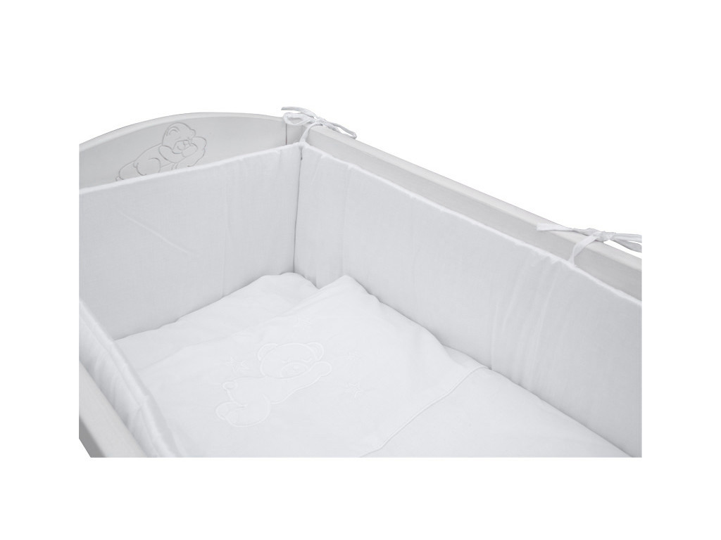 Biela sada do postieľky Martin je vynikajúcim doplnkom, ktorý oceníte. 7-dielna súprava zahŕňa vankúšik, perinku a ďalšiu veselú posteľnú bielizeň. Je vyrobená z kvalitných materiálov, ktoré sa postarajú o sladký spánok dieťaťa. Výbava je vhodná do postieľky 90 x 41 cm.