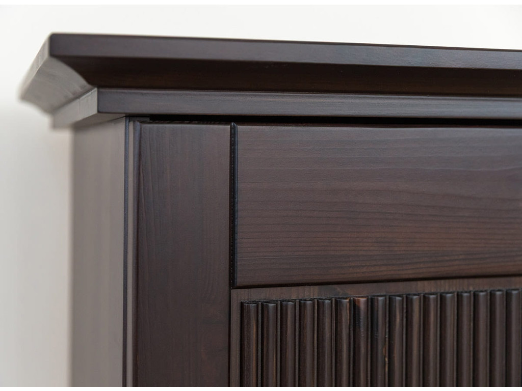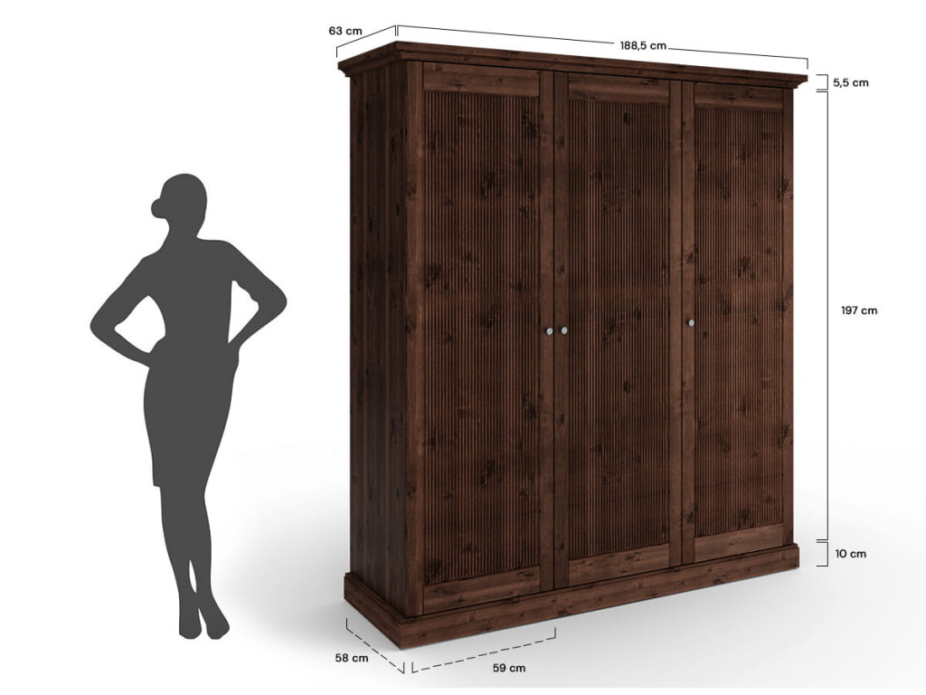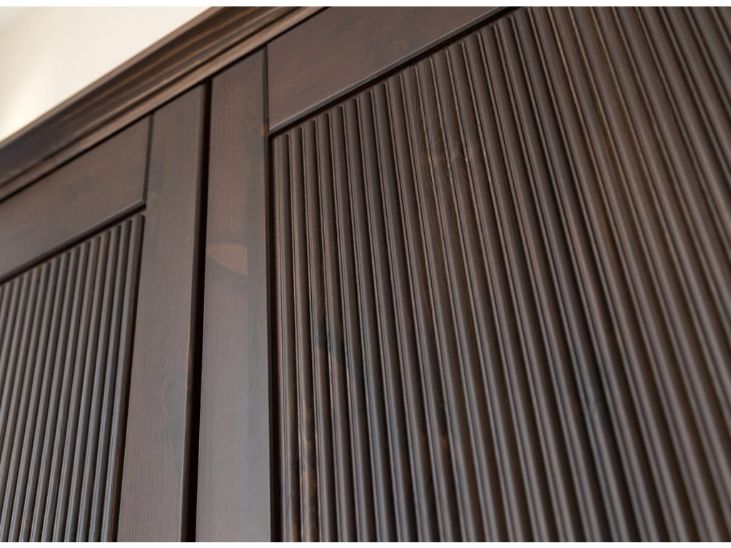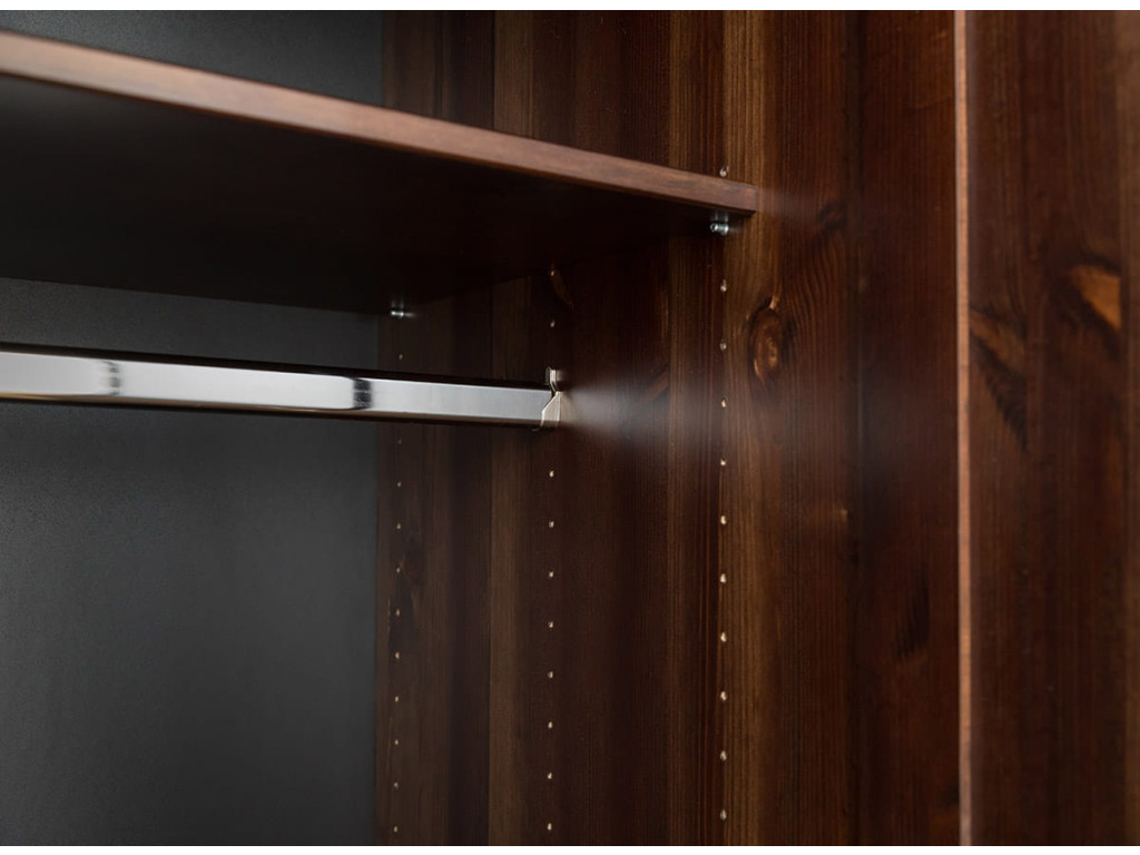 Šatníková skriňa z masívu Rosella 3D je výrazný kus nábytku, ktorý v sebe spája prirodzenú krásu dreva, remeselnú kvalitu a štýlový dizajn. Vyrobená z masívneho borovicového dreva a ošetrená ekologickou farbou na vodnej báze so 70 % pokrytím, umožňuje vyniknúť prirodzenej štruktúre materiálu, pričom si zachováva dlhodobú odolnosť. Teplý odtieň tabaku dodáva nábytku charakter a pocit domova.