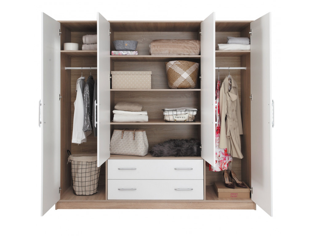 Šatníková skriňa Smart SR1 sa uplatní samostatne i v kombinácii so šatníkovými skriňami a nadstavcami z kolekcie Smart. Skriňa po otvorení dverí ponúkne veľký vnútorný priestor s poličkami a závesnými tyčami na zavesenie odevov i odevných doplnkov. Pozornosť si zaslúžia tiež 2 zásuvky. V skrini okrem oblečenia nájdu miesto aj športové pomôcky, poprípade hračky a sezónne doplnky. V prípade, že chcete zvýšiť kapacitu úložného priestoru skrine, odporúčame vám dokúpiť si nadstavec na skriňu Smart SRN1.
