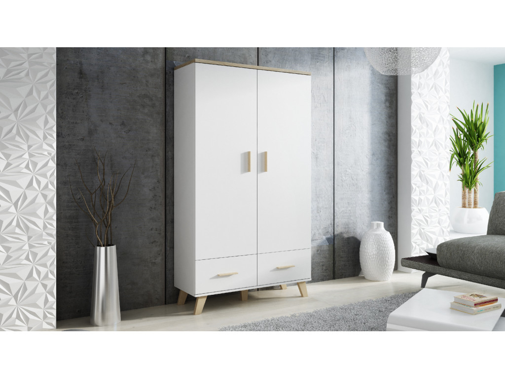 Šatníková skriňa Lotus v modernom prevedení, dodá škandinávsky štýl do každej spálne či predsiene. Vo vnútri sa nachádza tyč na zavesenie dlhých šiat. Na spodku nájdete 2 zásuvky, ktoré poskytnú viac úložného priestoru. Šatníková skriňa je v bielom matnom prevedení a stojí na nožičkách z dubového dreva.