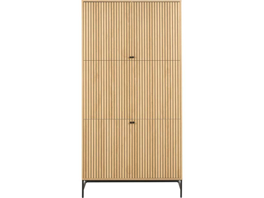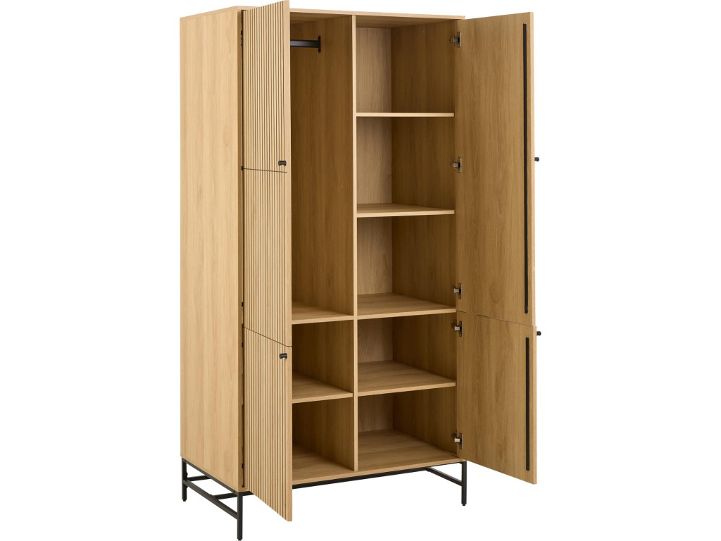 Štvordverová skriňa Albany je ideálna pre veľké úložné potreby. Lamelové dvierka a robustná oceľová základňa podčiarkujú industriálny štýl. Vnútorný ClothesBar poskytuje praktické riešenie pre oblečenie.