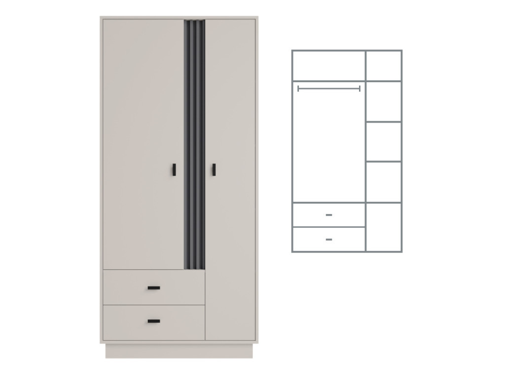 Elegantná dvojdverová skriňa Allmo 01 poskytne dostatok úložného priestoru v spálni. Skriňa vyniká svojím jednoduchým dizajnom. Je vyrobená v kombinácií 2 farieb - kašmírovo béžovej a antracitu.