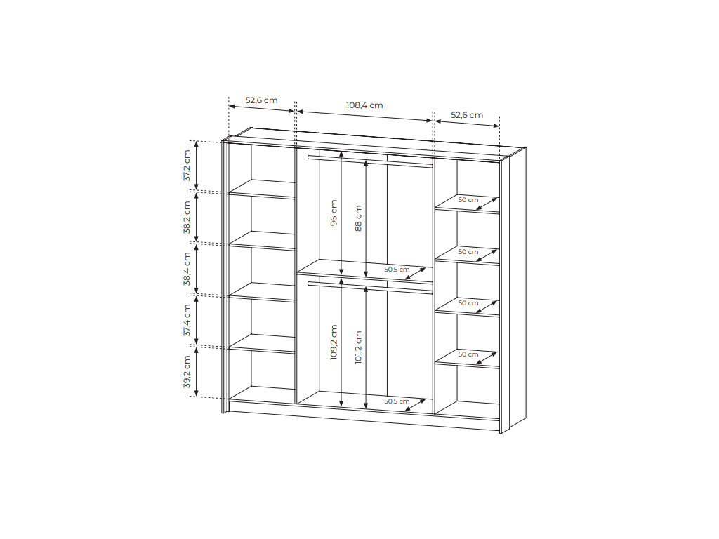 Rozmery: 223,2 x 59,6 x 210 cm