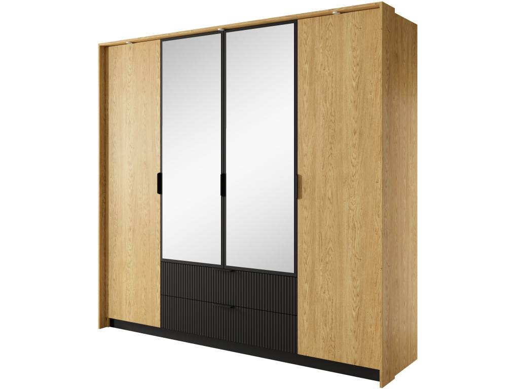 Šatníková skriňa Baltic A s rozmerom 223,2 x 59 x 210 cm je štýlovým a priestranným riešením úložného priestoru, ktoré kombinuje prírodný dekor dub baltic s modernými čiernymi lamelovými prvkami. Vďaka svojmu elegantnému vzhľadu a premyslenej funkčnosti sa stane dominantným prvkom každej spálne. Rozmery skrine poskytujú dostatok miesta na oblečenie a doplnky.
