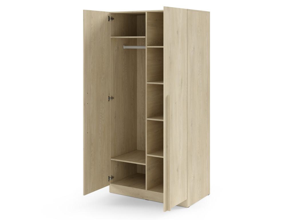 Šatníková skriňa Braga BR3 v dekore dub krémový je praktickým riešením pre menšie aj stredne veľké priestory. Interiér skrine je vybavený šatníkovou tyčou na zavesenie oblečenia a policami, ktoré umožňujú prehľadné usporiadanie vecí. Svetlé drevodekorové prevedenie pôsobí príjemne a jednoducho sa kombinuje s ostatným nábytkom.