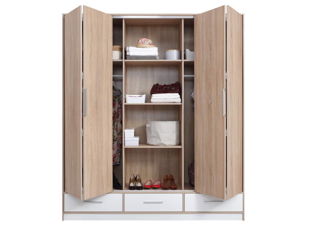 Šatníková skriňa Isko IS1 je vyrobená z laminovanej dosky, ľahko sa udržiava a čistí. Skriňa disponuje ABS hranami, čo výrazne zvyšuje jej odolnosť proti poškodeniu. Dostupná v elegantnej kombinácii biela - dub sonoma.