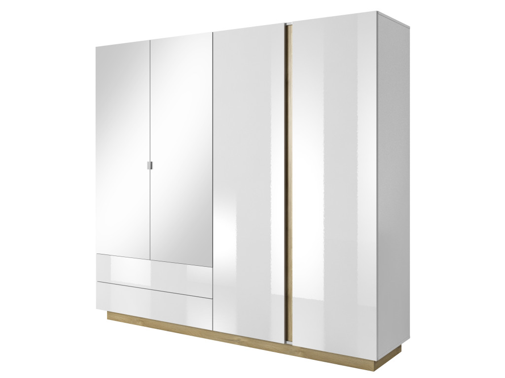 Šatníková skriňa so zrkadlom Arcon – biely lesk / dub grandson