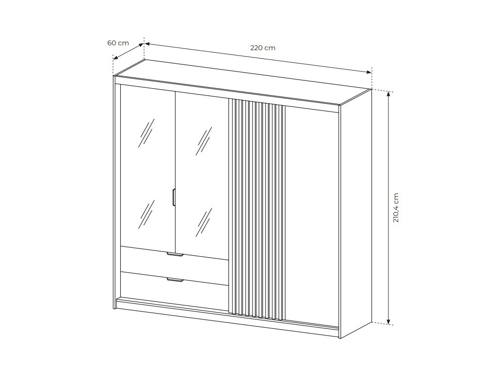 Rozmery skrine: 220 x 60 x 210,4 cm