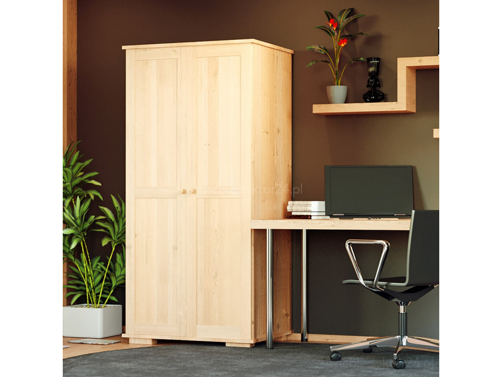 Šatníková skriňa Modern 80, je priestranná a zmestí sa aj do malých interiérov. Je vybavená veľkým priestorom s praktickou tyčou na zavesenie dlhých šiat a pánskych oblekov. Masívna skriňa je vyrobená z borovicového dreva, ktoré je zárukou dlhoročného používania.