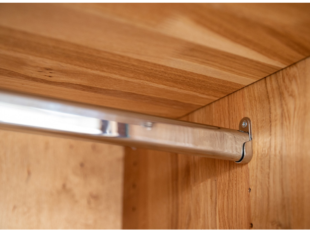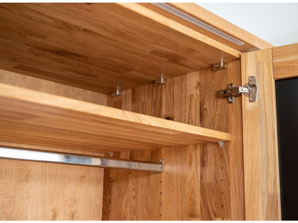 Trojdverová dubová šatníková skriňa 3D je vynikajúcou voľbou pre všetkých, ktorí radi cítia blízkosť prírody vo svojom domove. To všetko vďaka tomu, že je vyrobená z masívneho dreva, čo znamená, že na jej povrchu sú viditeľné nepravidelné pásy a letokruhy, charakteristické pre tento materiál. Šatníková skriňa je tvorená tromi skrinkami s dvierkami s pántami Hettich pre hladké a nehlučné otváranie / zatváranie.