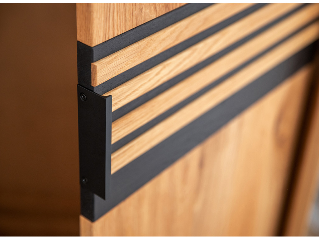 Drevená modulárna šatníková skriňa Ravello je minimalistická, elegantná a plná noblesy. Vďačí za to najmä zlatej farbe duba prelínajúcej sa s čiernou matnou. Celá konštrukcia korpusu pozostáva z 2 cm hrubých dosiek, ktoré zabezpečujú plnú stabilitu počas mnohých rokov používania.