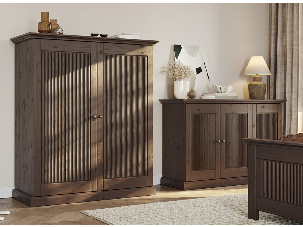 Kolekcia Rosella je dokonalou kombináciou prírodného borovicového dreva a romantického provensálskeho štýlu. Teplý odtieň tabaku, získaný ekologickou farbou na vodnej báze, zvýrazňuje štruktúru dreva a dodáva nábytku jemne rustikálny, no stále elegantný charakter. Kovanie v štýle starého striebra a systém tichého zatvárania podčiarkujú vysokú kvalitu a premyslený dizajn. Rosella prináša do spálne útulnosť, harmóniu a pohodlie – miesto, kde sa každý deň začína aj končí v pokoji.