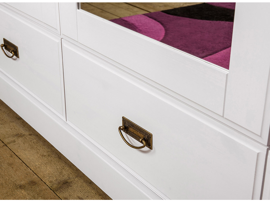 Drevo, z ktorého je šatník vyrobený, je fínska borovica. Taký odolný a pevný materiál zaručuje, že biela drevená skriňa bude svojim používateľom dlho slúžiť. Prírodné zrná v dreve sú viditeľné voľným okom. Fínska borovica, ktorej drevo bolo použité pri výrobe nábytku, je strom preslávený jednoduchým spracovaním a vysokou odolnosťou. Vďaka tomu je nábytok z borovice investíciou na roky.