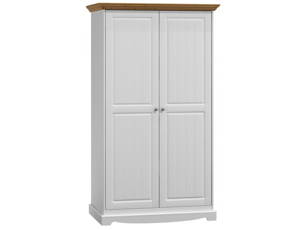 Jednoduchá a univerzálna biela šatníková skriňa s tyčou a policou. Je ideálna do haly alebo spálne. Vyrobená z borovicového dreva v provensálskom štýle zapôsobí vo všetkých smeroch - krásne frézy a tvary nábytku. Šatník ma veniec v dubovej farbe, ktorý mu dodáva eleganciu.