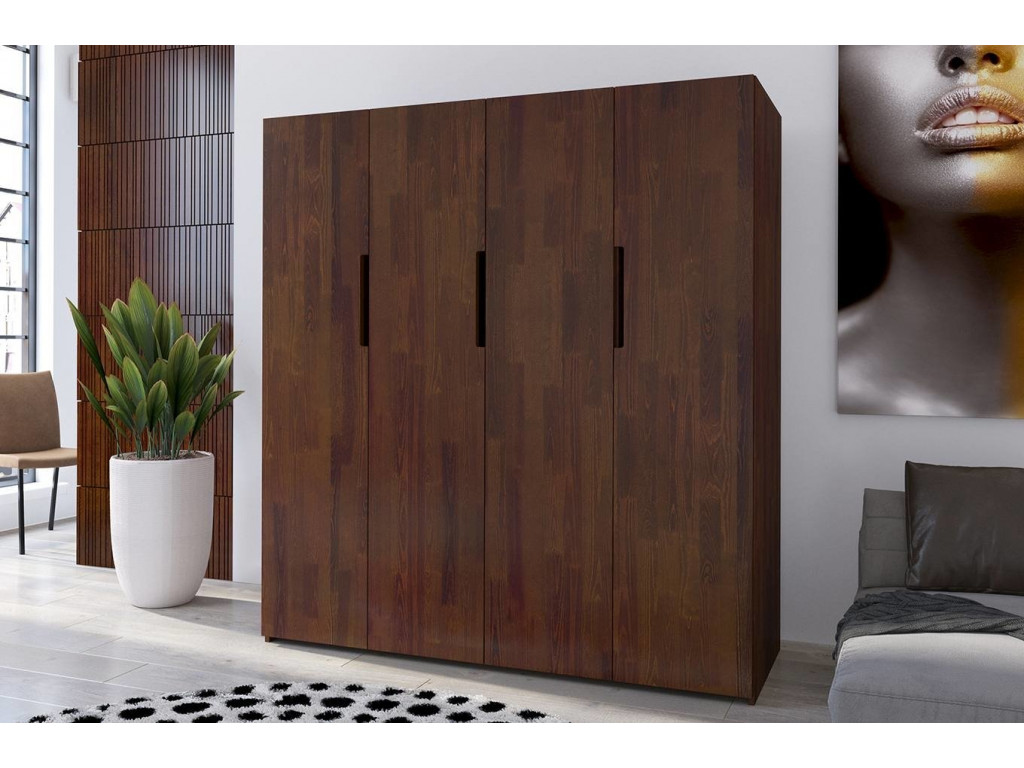 Nadčasový a moderný vzhľad. Masívna skriňa Bergman 4D, zaujme každého náročného návrhára vlastnej spálne. Táto štvordverová šatníková skriňa, je vyrobená z voňavej borovice a dizajnéri sa s ňou naozaj vyhrali. Za jej dverami nájdete až 3 tyče na zavesenie a 4 police, ktoré sú umiestnené v rôznych výškach.
