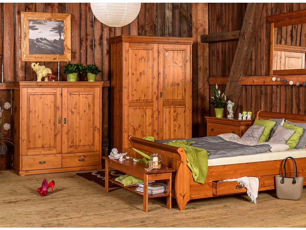 Šatníková skriňa z borovicového dreva Toskana 2D - jelša