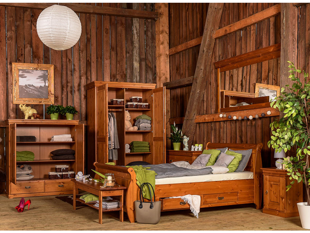 Jemná a praktická zároveň. Hovoríme o šatníkovej skrini z masívnej borovice Toskana 2D, ktorá disponuje veľkým úložným priestorom. Nájdete v nej 5 políc, tyč na zavesenie dlhých šiat a 2 zásuvky. Zamknúť ju môžete medeným kľúčom.