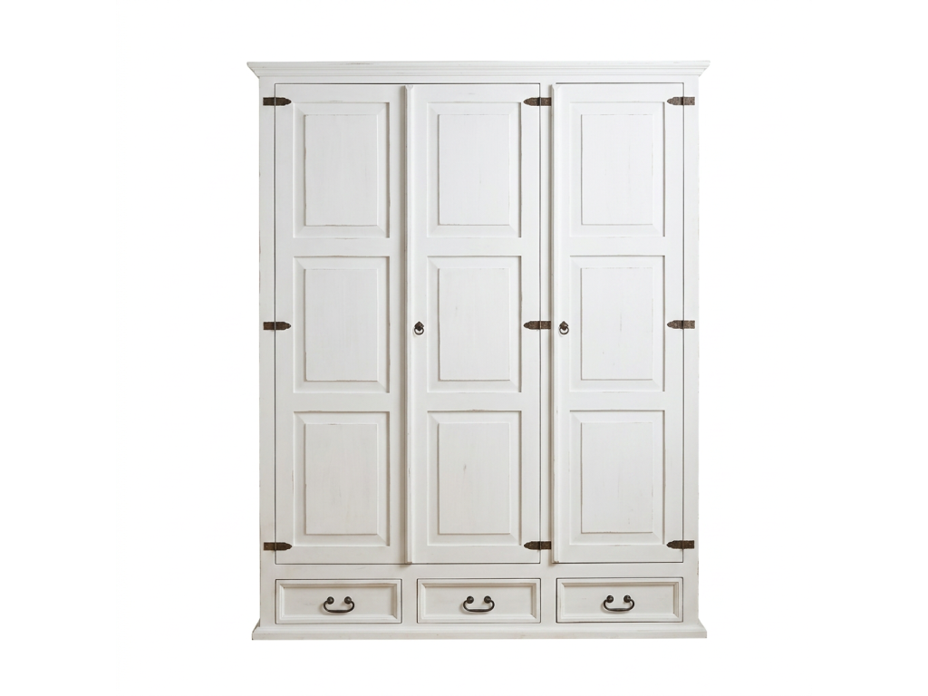 Trojdverová šatníková skriňa z borovicového dreva je vhodná pre tých, ktorí potrebujú veľký šatník. Na výber máte z viacerých možností vnútorného usporiadania. Buď uprednostníte skriňu na vešiaky, prípadne potrebujete police. V dolnej časti skrine na nachádzajú dve zásuvky.