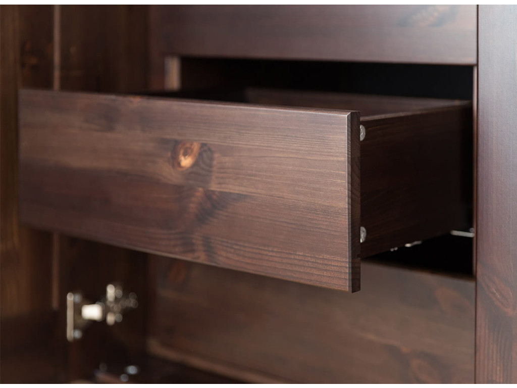 Kolekcia Rosella je dokonalou kombináciou prírodného borovicového dreva a romantického provensálskeho štýlu. Teplý odtieň tabaku, získaný ekologickou farbou na vodnej báze, zvýrazňuje štruktúru dreva a dodáva nábytku jemne rustikálny, no stále elegantný charakter. Kovanie v štýle starého striebra a systém tichého zatvárania podčiarkujú vysokú kvalitu a premyslený dizajn. Rosella prináša do spálne útulnosť, harmóniu a pohodlie – miesto, kde sa každý deň začína aj končí v pokoji.