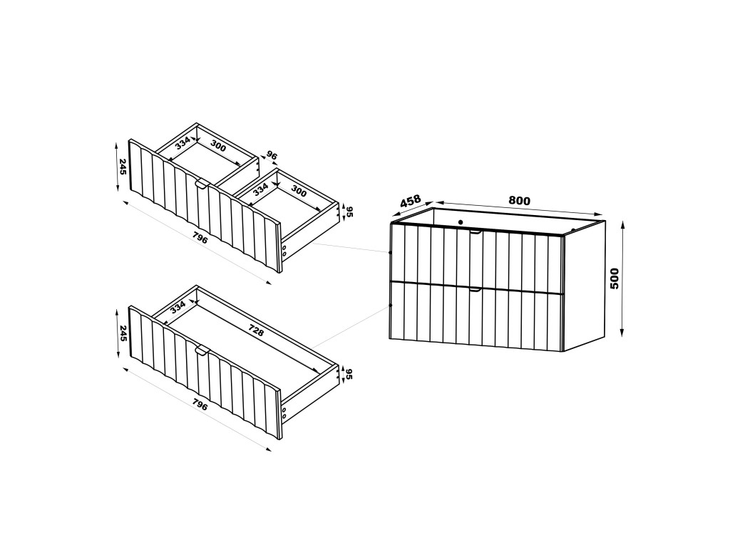 Elegantný profil vtlačených vĺn na čelách zásuviek a štýlové zlaté kovové úchytky dodávajú skrinke sofistikovaný a luxusný vzhľad. Závesné prevedenie zvýrazňuje vzdušnosť a čisté línie priestoru. Kolekcia Arkos je vyrobená z laminovanej DTD (16 mm) a fóliovanej MDF (18 mm), čo zaručuje odolnosť a dlhú životnosť aj vo vlhkom prostredí. Skrinka disponuje tichým dovieraním a zásuvkami s polovýsuvmi, čo zvyšuje komfort pri každodennom používaní.