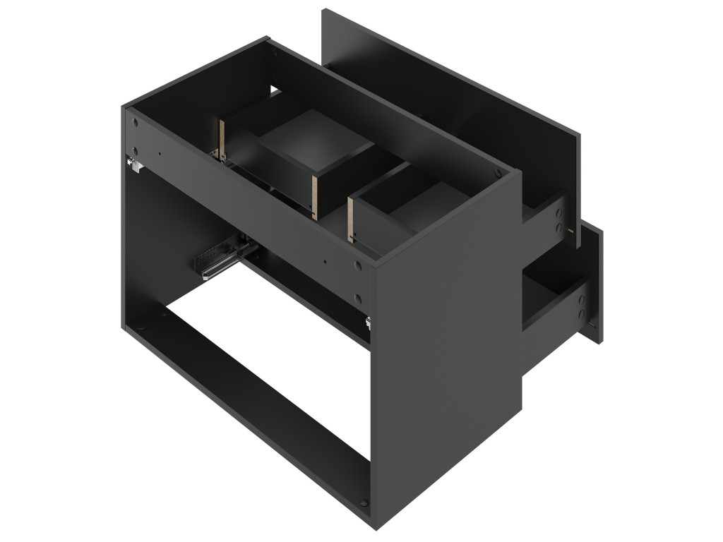 Kúpeľňová skrinka Arkos 07 z kolekcie Arkos v matnej čiernej farbe je dokonalým spojením moderného dizajnu a funkčnosti. So šírkou 80 cm a dvomi priestrannými zásuvkami ponúka dostatok úložného priestoru na organizáciu vašich kúpeľňových potrieb. Dostupná je v štyroch variantoch: bez vrchnej dosky, so vrchnou doskou, s umývadlom na dosku alebo so zápustným umývadlom, čo umožňuje plnú prispôsobiteľnosť vašim preferenciám.