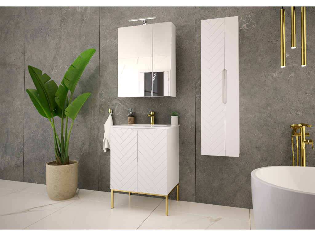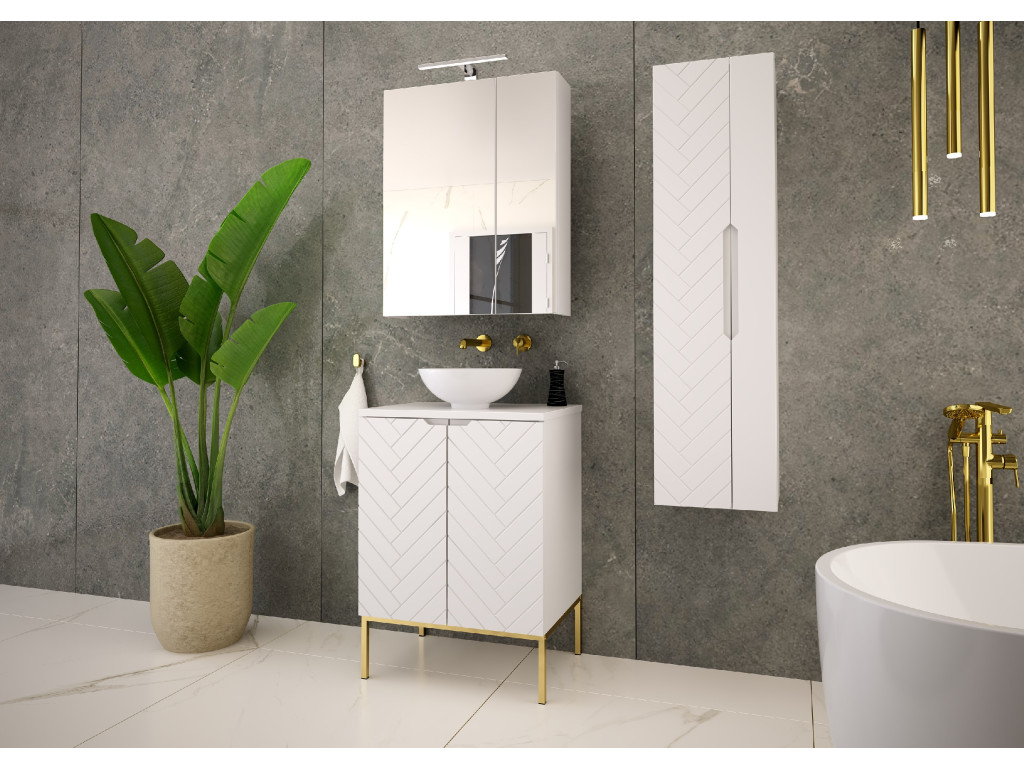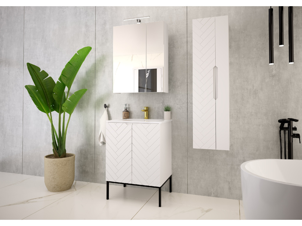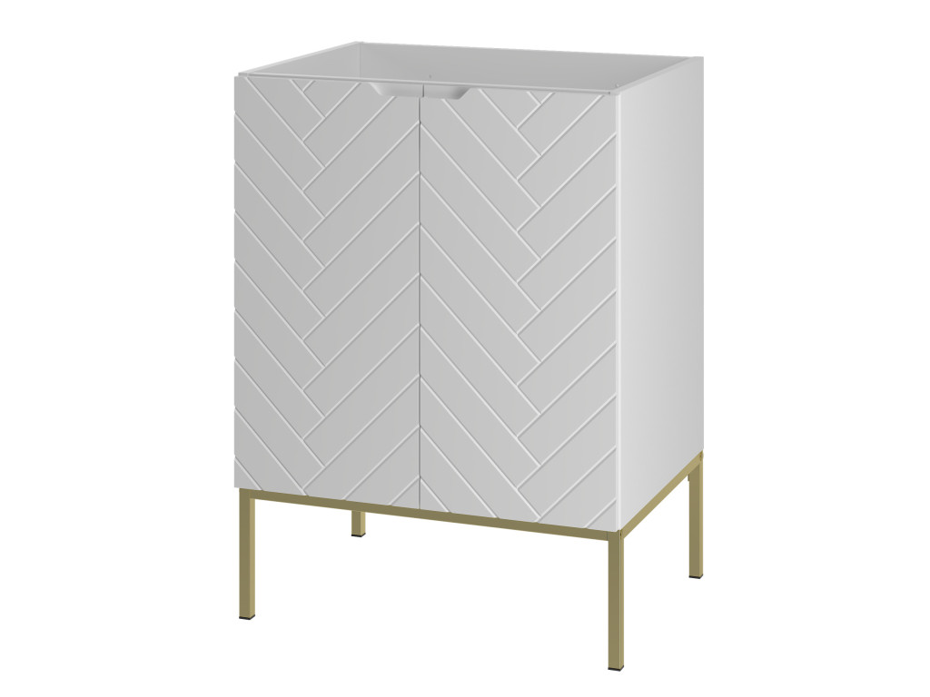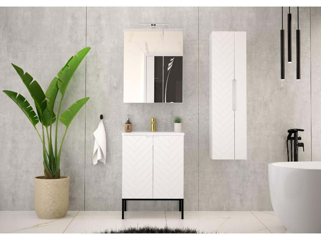 Kúpeľňová skrinka Aspen 09 v matnej bielej farbe so šírkou 60 cm je dostupná v štyroch variantoch: bez vrchnej dosky, so vrchnou doskou, s umývadlom na doske alebo so zápustným umývadlom. Frézované čelá so stromčekovým vzorom a bezúchytkový dizajn dodávajú kúpeľni moderný minimalizmus. Táto kompaktná skrinka je ideálnym riešením pre menšie priestory, ktoré si vyžadujú praktické a estetické riešenia.
