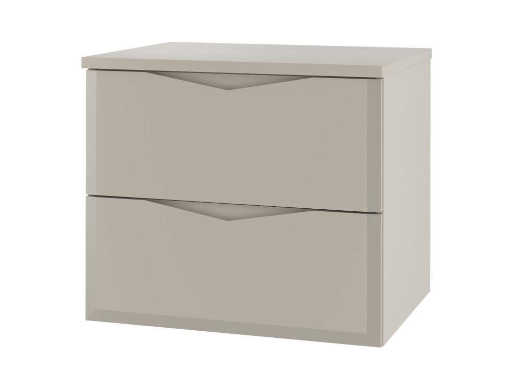 Závesná kúpeľňová skrinka Delica 02 s dvoma zásuvkami a bezúchytkovým otváraním je ako stvorená do menších kúpeľní. Vyniká matným béžovým prevedením so zrezanými hranami na frontoch, čo pôsobí luxusne. Tiché dovieranie a čiastočný výsuv zásuviek zabezpečujú pohodlné používanie. Skrinka je dostupná v štyroch variantoch – bez dosky, s doskou, so zapusteným umývadlom alebo s umývadlom na dosku.
