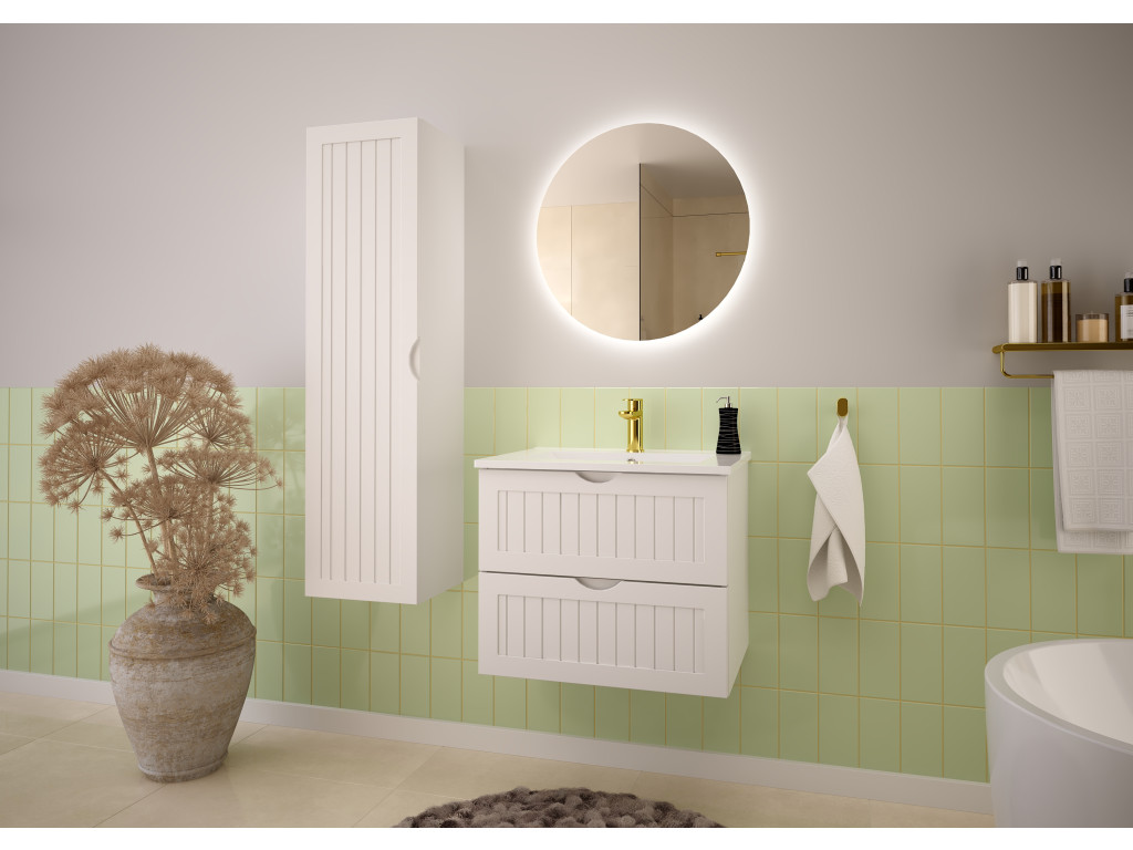 Pridajte do svojej kúpeľne štýlový a funkčný prvok v podobe kúpeľňovej skrinky s umývadlom Mona 02. V elegantnej bielej farbe a s moderným dizajnom s čistými líniami skrinka dokonale zapadne do akéhokoľvek súčasného interiéru.