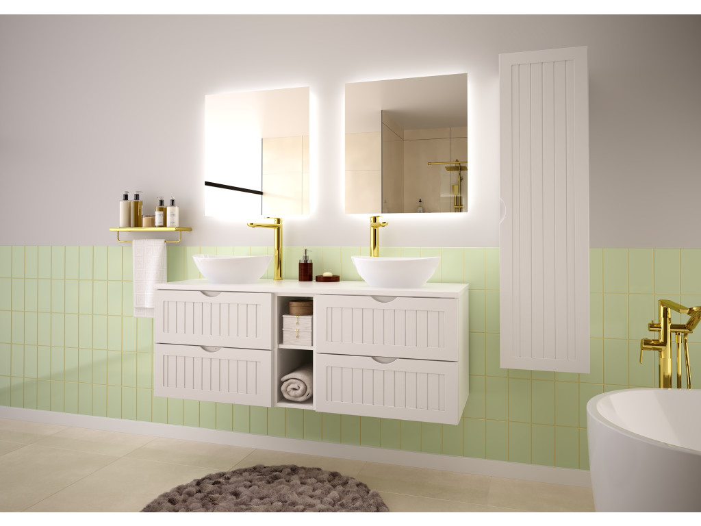 So štyrma zásuvkami vybavenými tichým dovieraním zaručuje hladké a bezhlučné používanie. Vnútro skrinky poskytuje dostatok úložného priestoru pre všetky vaše kúpeľňové potreby.