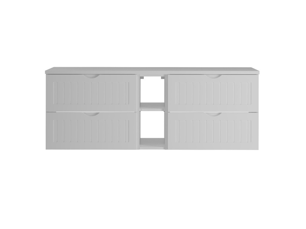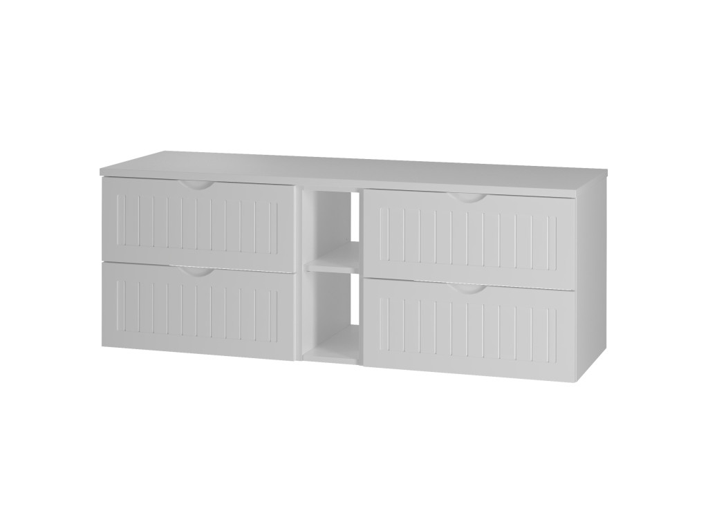 Široká skrinka pod umývadlo Mona 02 140 so šírkou 140 cm a štyrmi zásuvkami poskytuje dostatok úložného priestoru. Je vybavená zafrézovanými úchytkami a tichým dovieraním pre pohodlné používanie. Vyrobená z kvalitných laminovaných dosiek a MDF frontov, ideálne doplní každú súčasnú kúpeľňu.