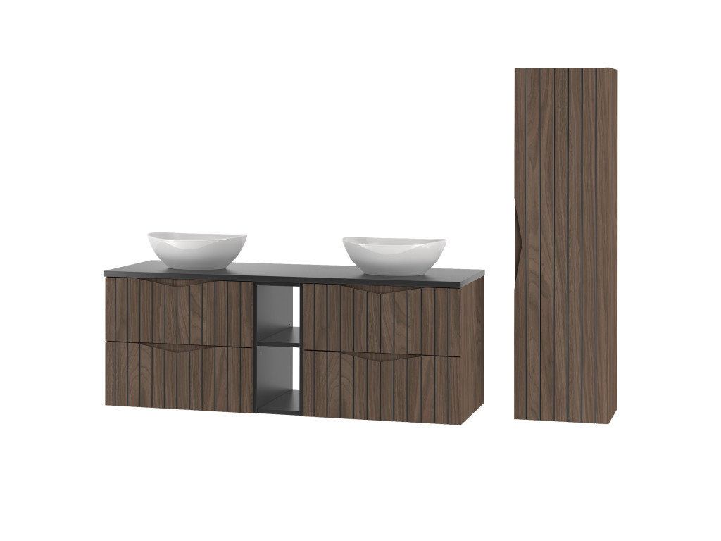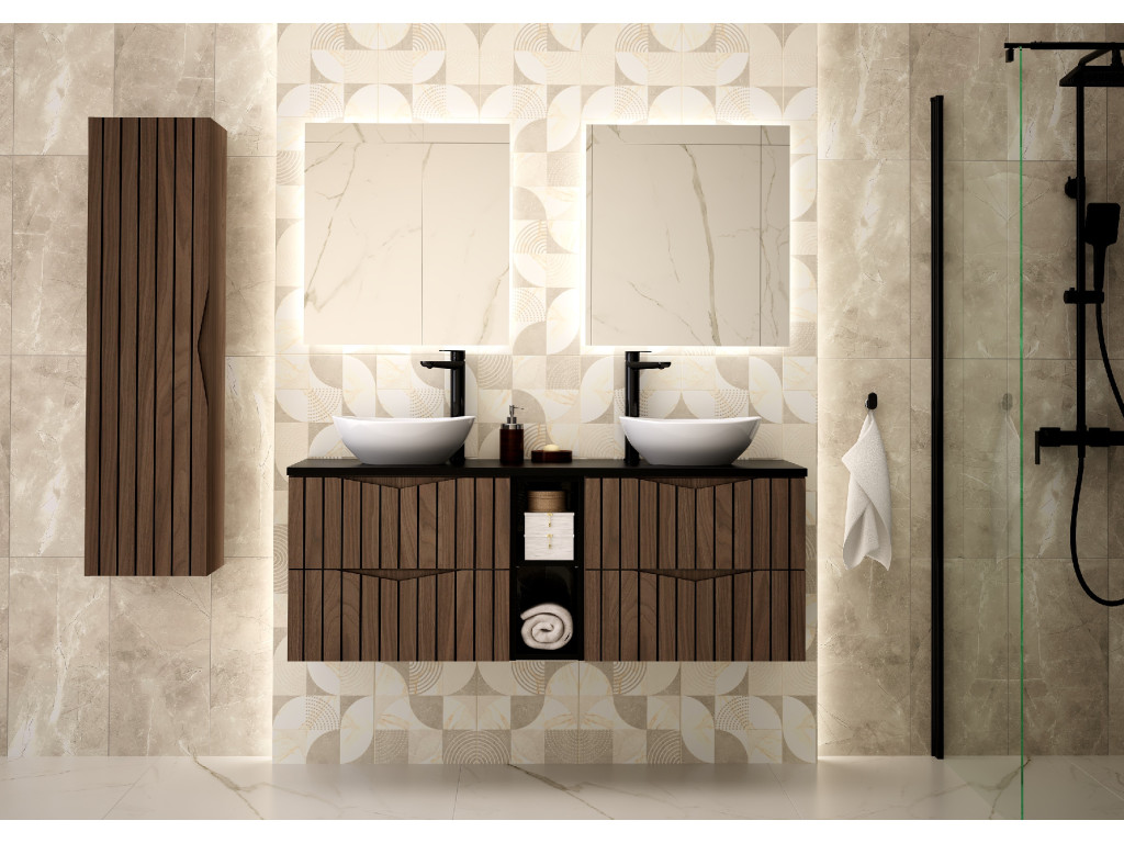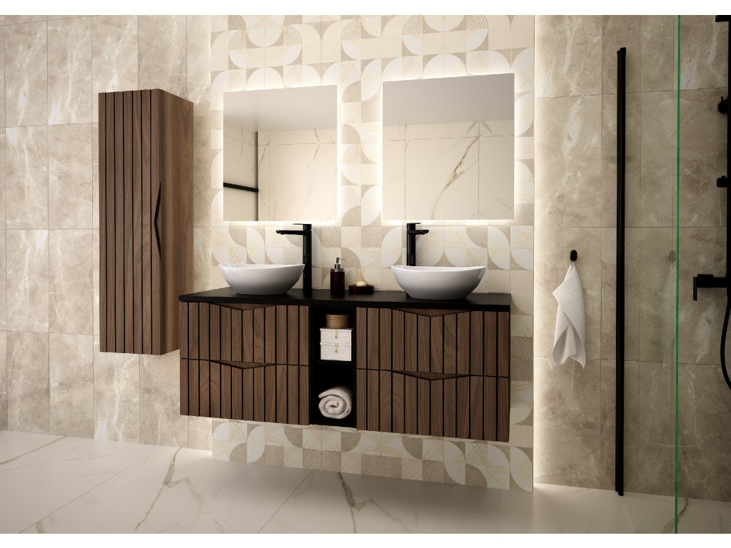 - Elegantná orechová farba v kombinácii s čiernou: Skvostný dizajn v orechovom prevedení sa hodí do rôznych typov kúpeľní a pridáva priestoru na eleganciu a teplo.